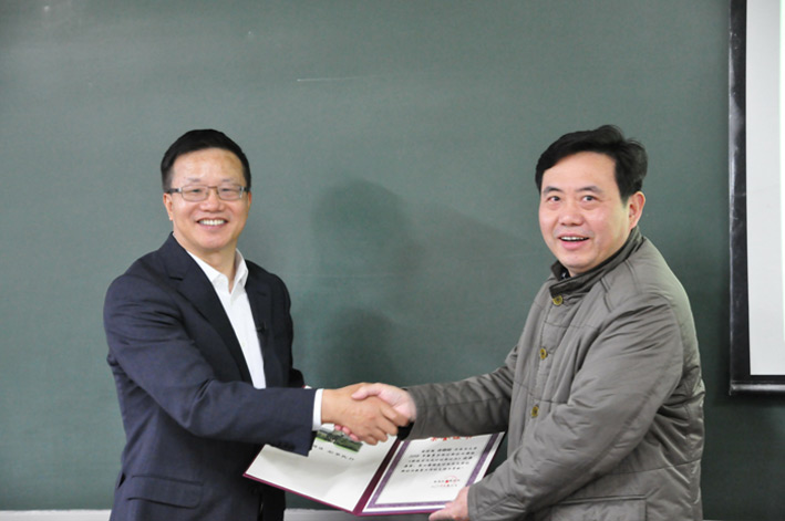 胡义东(左)向俞德超颁发“创新创业课程授课嘉宾”荣誉证书