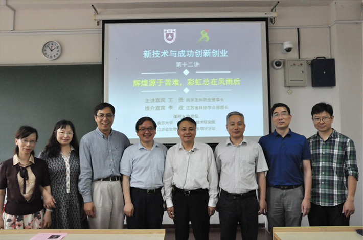 6月5日下午,由常州南京大学高新技术研究院/江苏省产业技术研究院医药生物技术研究所(简称省产研院医药所)等单位发起的“健创汇”生物医药创新创业系列讲座第十二讲在南京大学仙林校区开讲。本期课程的特邀授课嘉宾是南京圣和药业董事长王勇博士,推荐嘉宾是江苏省科学技术协会学会部部长李政,省产研院医药所所长华子春教授主持讲座。
