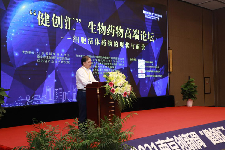 6月18日,2021南京创新周“健创汇”生物药物高端论坛在南京国际展览中心隆重召开,本次论坛由江苏省科学技术协会、南京市江北新区管理委员会、江苏省产业技术研究院等单位共同举办,江苏省产业技术研究院医药生物技术研究所联合江苏省生物化学与分子生物学学会等单位联合承办。本次论坛的主题是“细胞活体药物的现状与前景”。江苏省科学技术协会党组成员、副主席冯少东、江苏省产业技术研究院党委书记胡义东、南京市江北新区生命健康产业发展管理办公室副主任罗书琴参加开幕式并致辞,多位细胞活体药物领域权威专家围绕细胞活体药物,为论坛带来了精彩的专题报告,分享了药物开发、药效研究、质量控制、临床应用等方面的探索和研究。