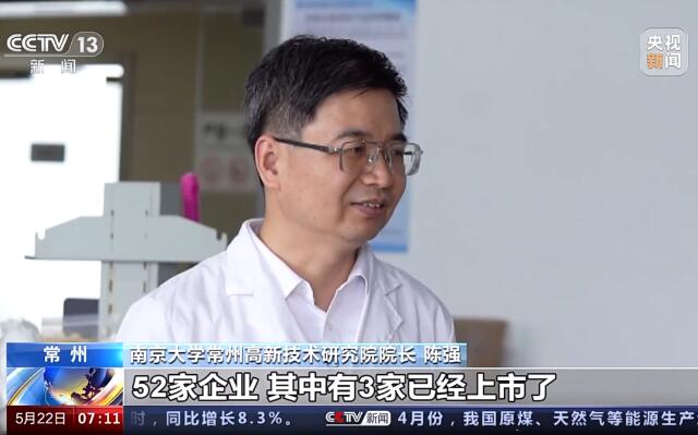 2023年5月19日,央视采访常州科教城,陈强正在忙着和常州的企业研发飞机涂料的关键助剂。他所在的南京大学常州高新技术研究院,是常州引进落户的第一批研发机构,瞄准的就是生物医药、新材料、新能源等多个领域的科技成果转化。研究院院长陈强在采访中提到:“我们现在团队已经有66个人为常州的企业进行服务,孵化了52家企业,其中3家已经上市了。我们根据常州企业提的一些需求,凝炼成科学问题,发现很多很好的解决方案,这些方案应用到企业之后,能够实实在在地为企业产生效益,既解决了实际问题,又解决了理论问题。”来常17年来,陈强院长带领团队先后与常州企业共建3个院士工作站和3个省级工程研究中心,32家校企联合实验室,其中一家获批建设“国家重点实验室”;引进江苏省海外归国领军型创业团队6个、常州市海外归国领军型创业团队18个,孵化52个创新型企业。他是把科研论文写在常州大地上的人。